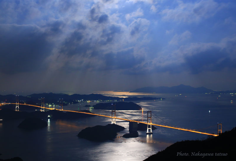 冬型の雲の影響の少ないエリアから海面に映る月明かり