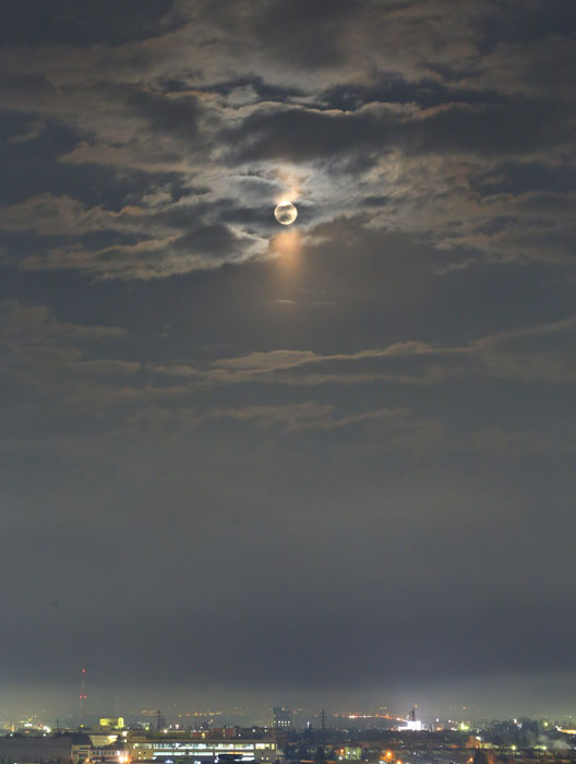 大気の温度も下がる冬場は、太陽柱は月光柱が見られる事が多い