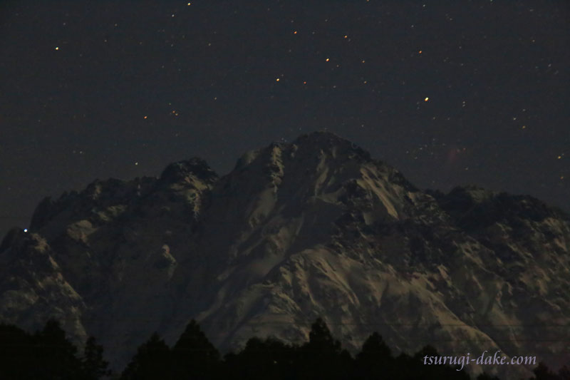ちょうど半月となる下弦の月明かりは星空と雪山が一緒に見ることができる。