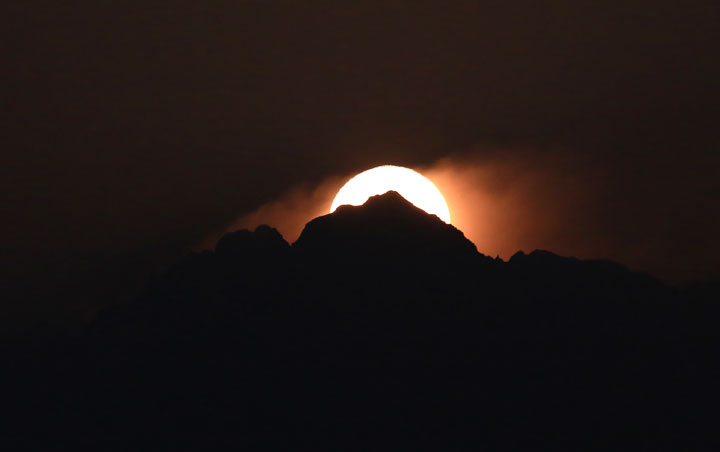 稜線は風が強く雪煙は100m以上舞い上がっている模様