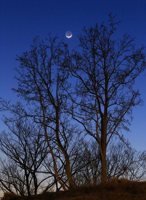 春期の宵月は明るい部分が下側となっている(秋期は右側)