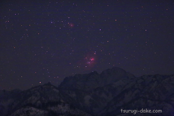 まだ真っ白な剱岳の背後から干潟星雲(M8)