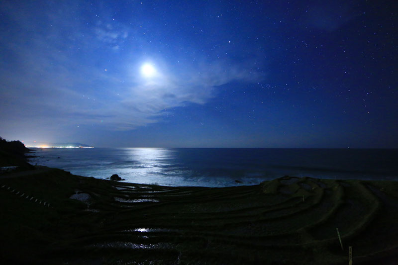北よりの風打ち寄せる波が月明かりの空に鳴る