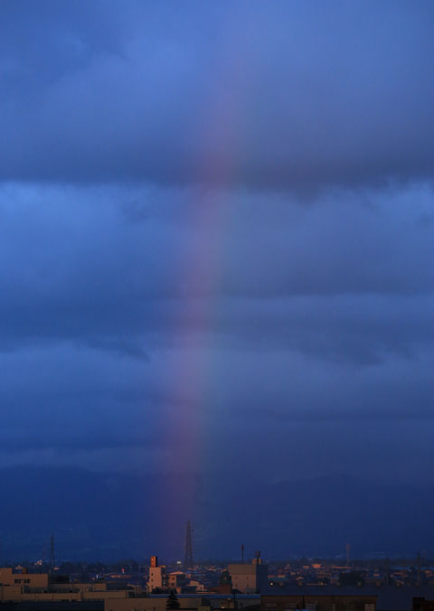 東天に雨雲 西空から陽が射しこみ虹の条件