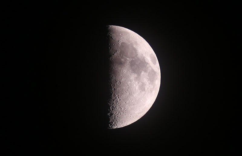 雲間から上弦の月