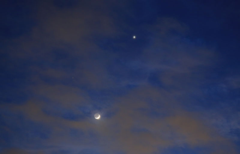 宵空に金星と月 夕焼けよりも街明かりが反射して微妙な色合い