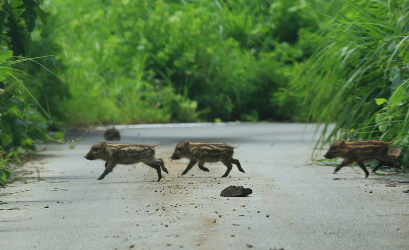 親猪はでかいがウリ坊は跳ね回る 里山の状況が変わってきそう