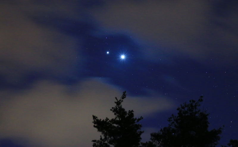 夜明け前の東空に木星と金星が1°間に並ぶ