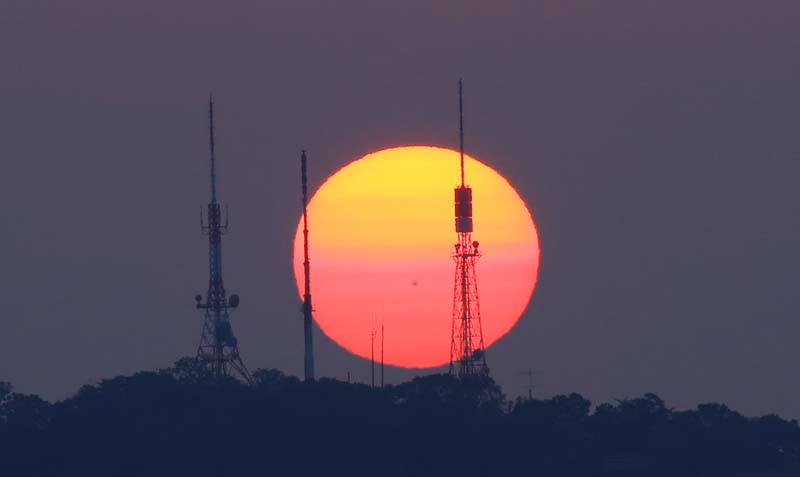 普段は明るい太陽もかすんだ夕日で存在がわかる