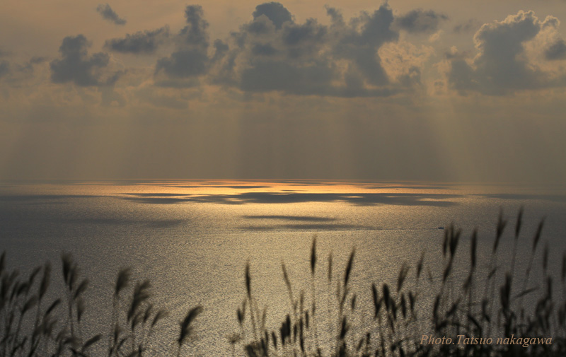 海面に陽の影 ススキがなびき秋へ