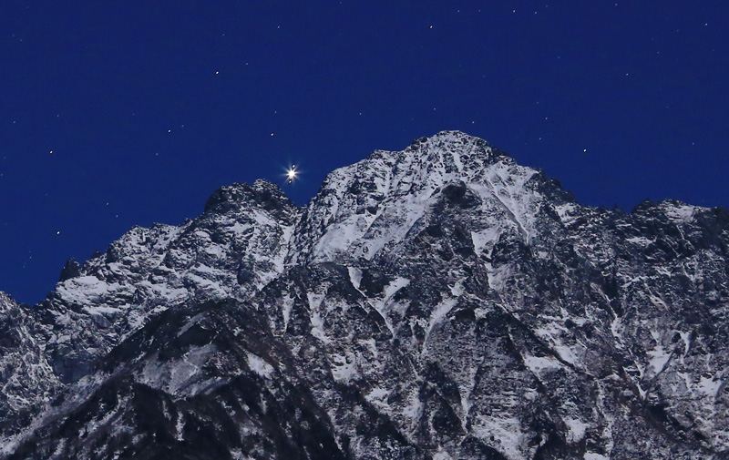 夜明け前には、衛星を従えた木星が剱岳からひょっこり