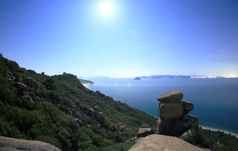 満月の夜 静かな海を見下ろす