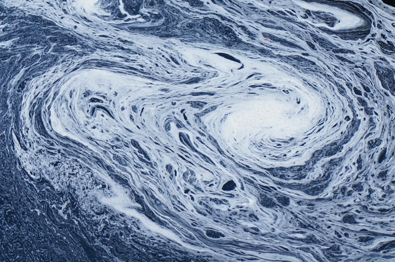 自然渓流の渕に流れが渦巻く