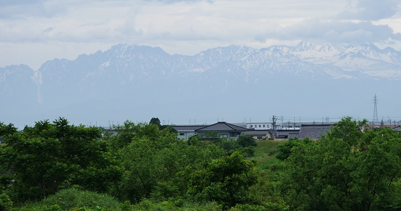 富山平野の広い範囲で剱・立山が見ることができる