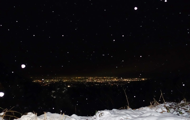 積雪ラインが徐々に下がってきて今宵は400m、次の寒気では下界まで?