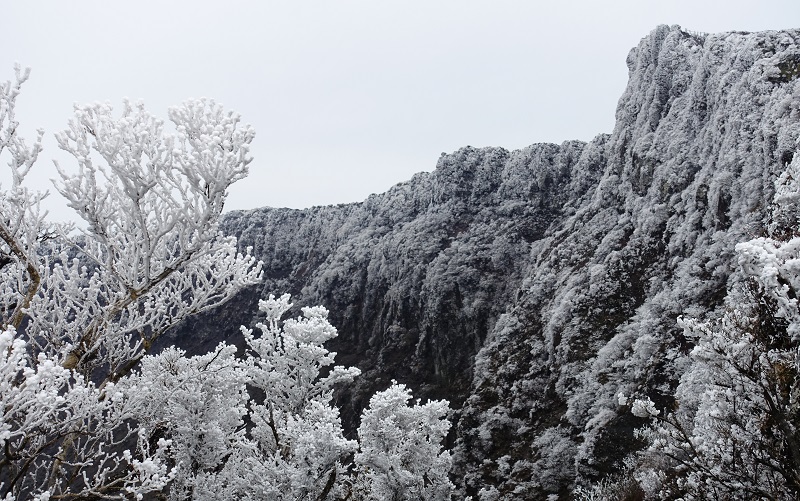 寒気の影響で稜線の風上側が白色化
