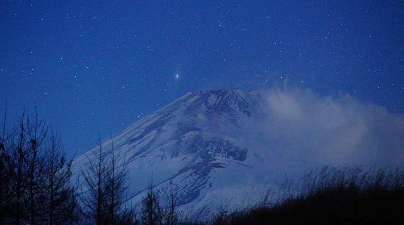 街明かりも近いので月明かりなどなくともしっかり富士山