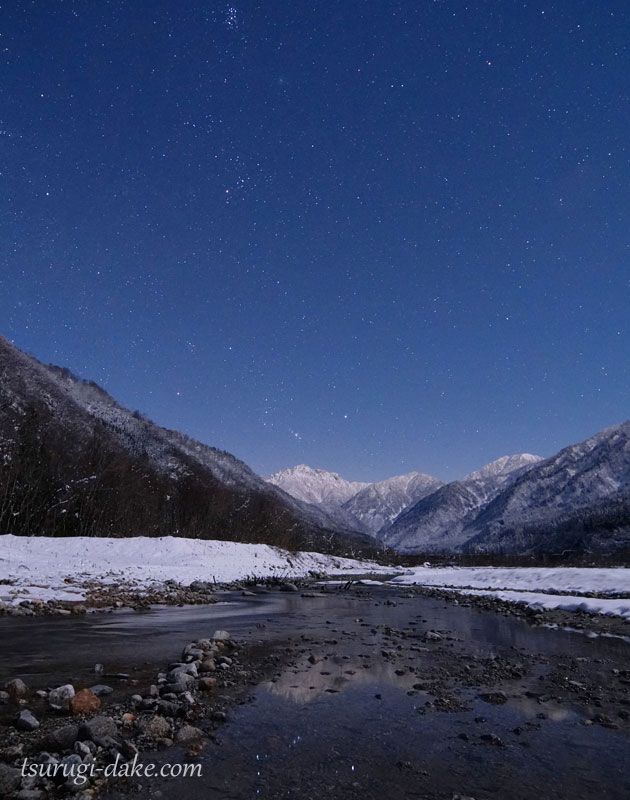 上弦の月明かりで雪山も星空もくっきりすっきり