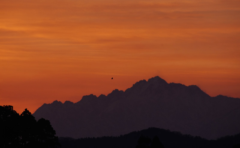 薄雲がやってきた夜明け前 刻々と赤の度合いが変わる
