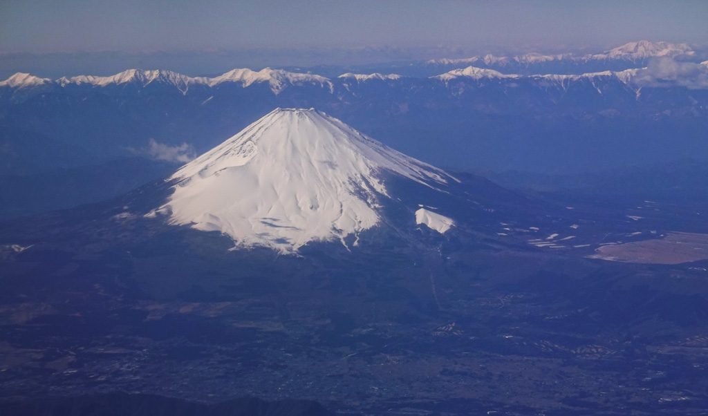 富士山の向こうに南アルプス その背後には中央アルプスと御嶽山
