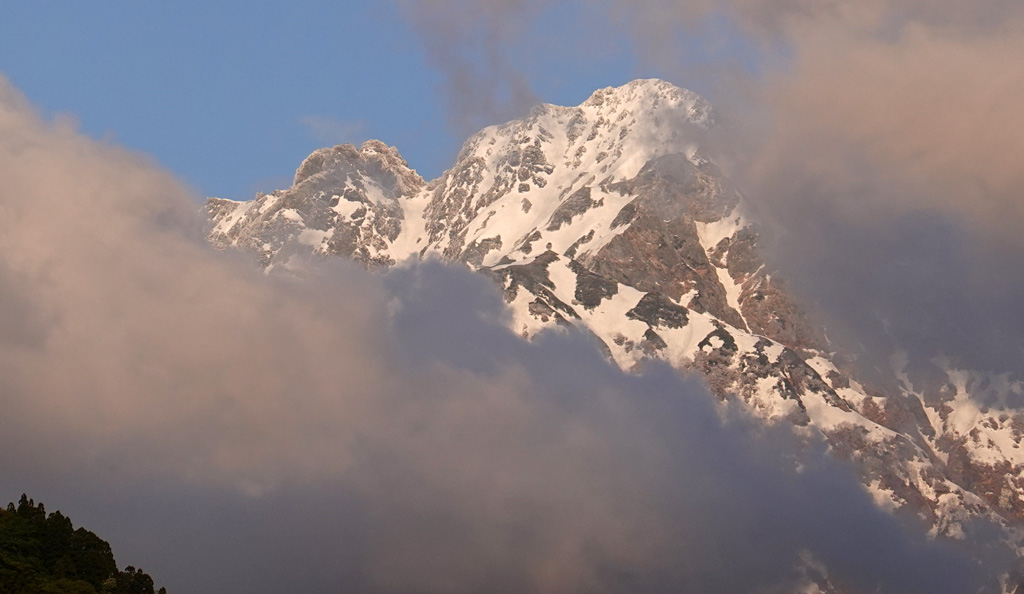 夕方姿を見せた剱岳は霧氷があったり黄色ぽかったり