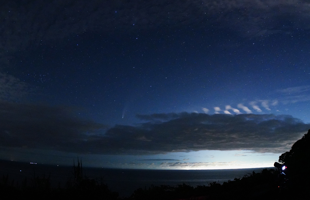 日本海上空の彗星 沖合の漁火に負けている 今日は海の日
