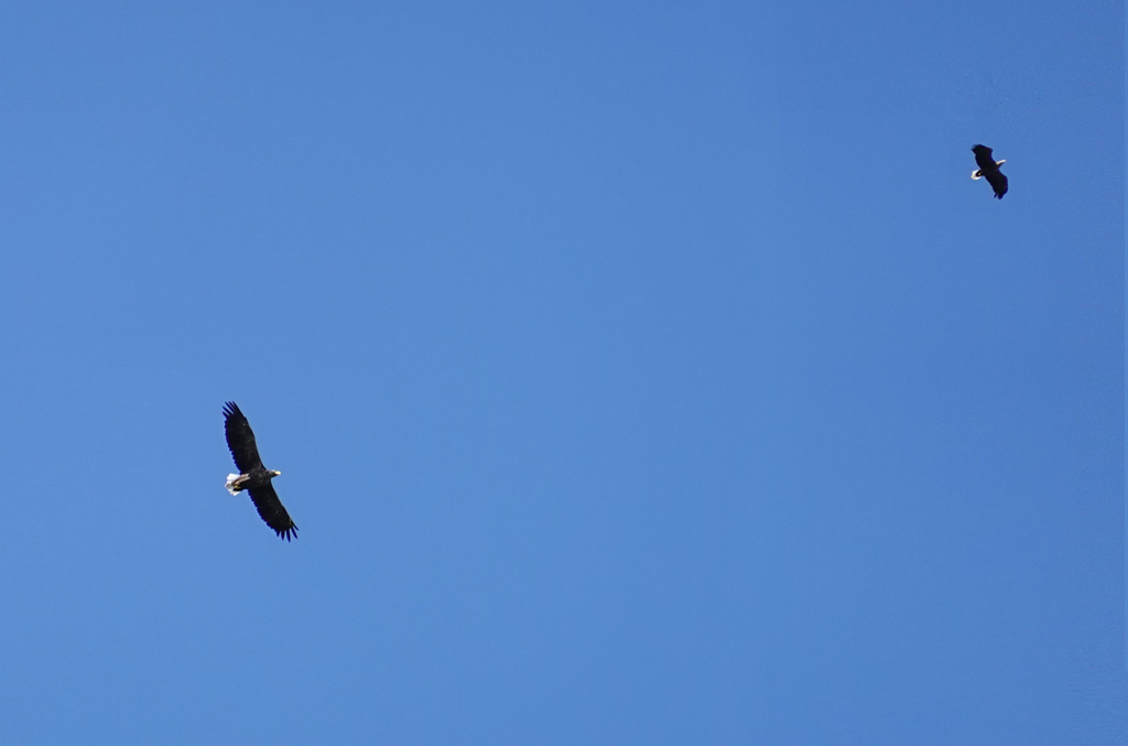 ふと気がつき見上げると尾の白い鷲 2羽でのクルージング