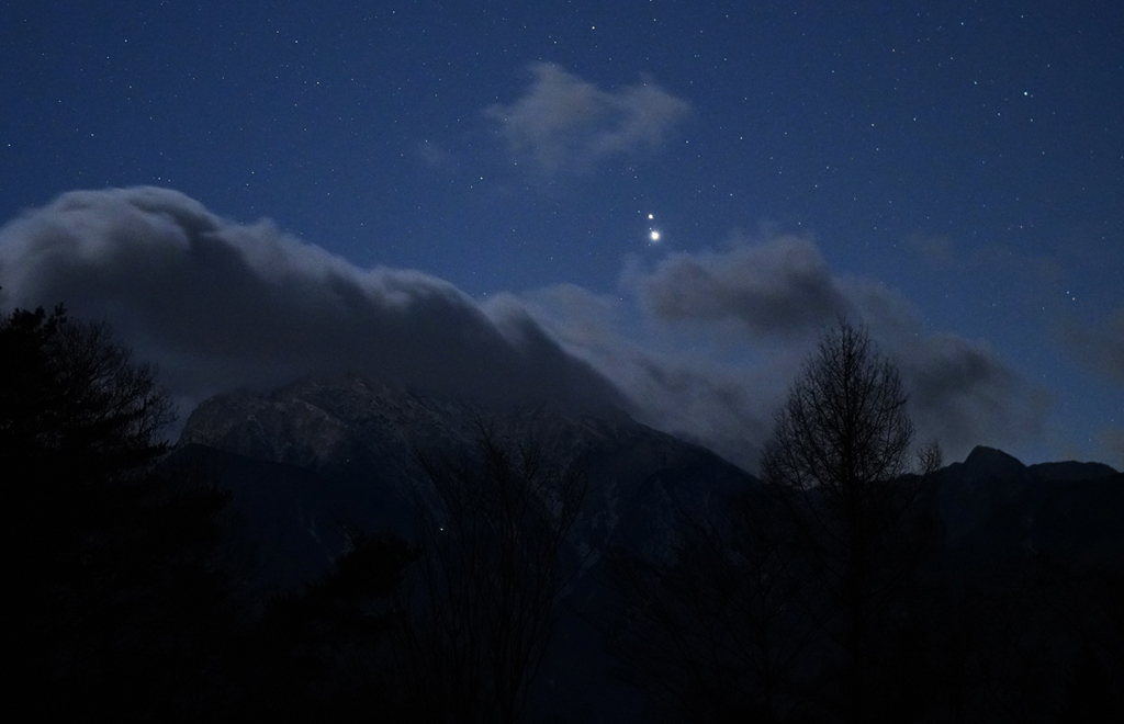 この地球の日本列島では、北アルプスを抜けた南アルプス山麓でも雪雲の影響