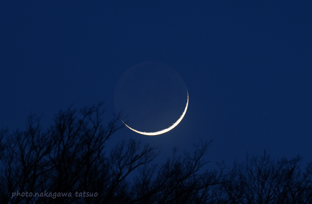 月齢1台の光加減が薄暮の空に浮かぶ状況が判りやすい