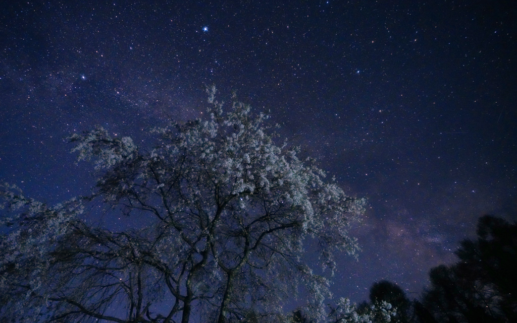 サクラ星景も終盤 天の川も高く上ったところで夜明け