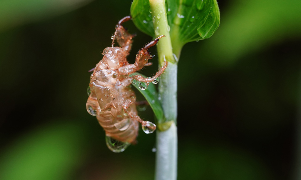 初夏にブナ帯に生息するエゾハルゼミ 雨が降る前に羽化した模様