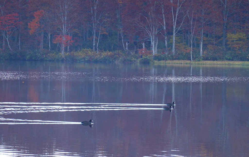 標高1000mでは紅葉のピーク過ぎ、葉付きの良いカエデ類の赤が眼につく様相