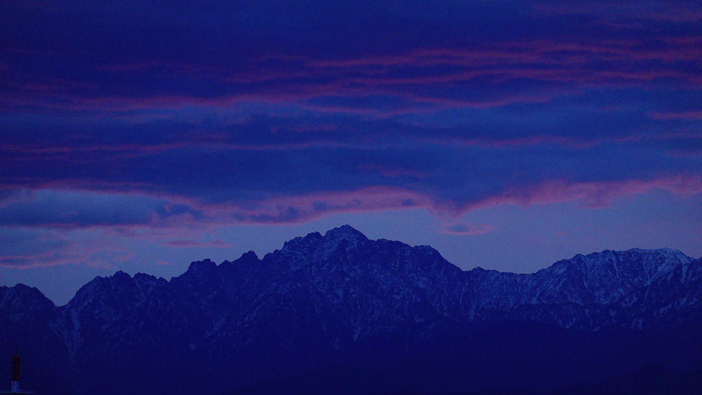 富山平野は雲の下でも向こう側は晴れて朝日が染まる