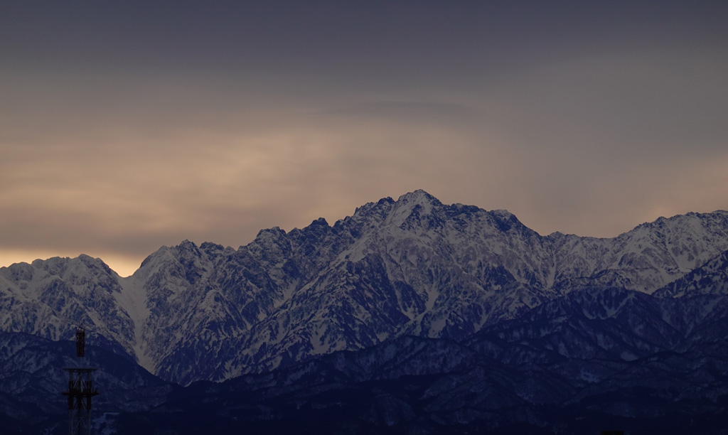 稜線の積雪も融けることもあるからか幾分春めいても見える剱岳