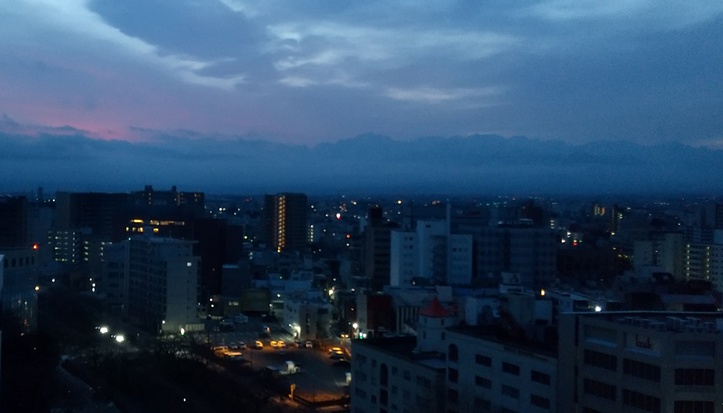 高層の雲があっても朝焼けのシルエットで稜線が浮かぶ