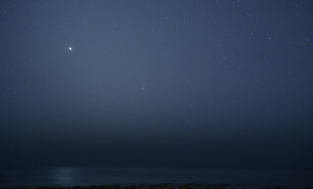 ポン・ブルックス彗星を海岸から眺める 高度も低くなり低空にモヤがあるためか