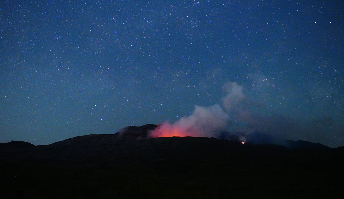 半日後、レベル2に上がって火映を伴う噴煙の中岳