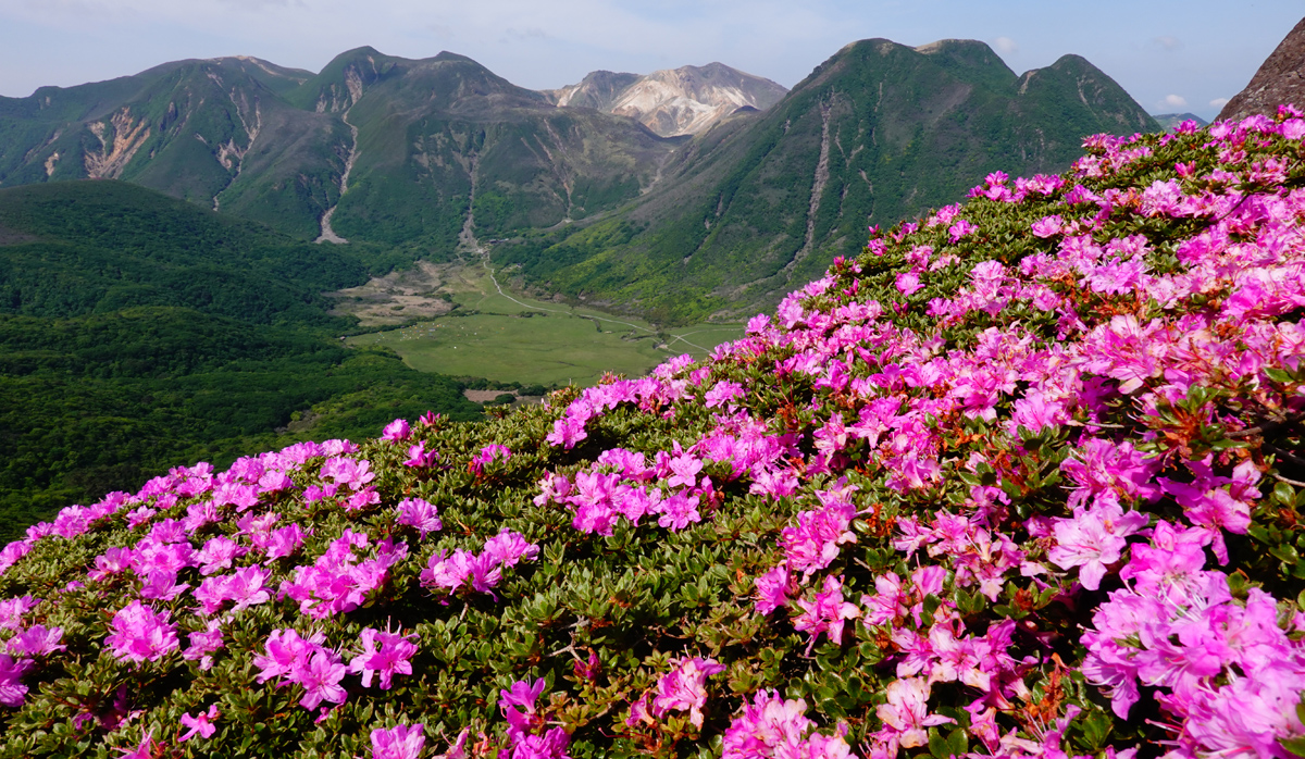 かつて泊まった天場を見下ろしながら愛でるミヤマキリシマ
